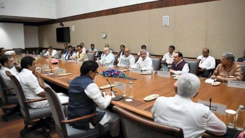 नईदिल्ली। भारतीय सेना ने ऑपरेशन सिंदूर के तहत महज 25 मिनट में सटीक हमला करते हुए आतंकी संगठनों लश्कर-ए-तैयबा और जैश-ए-मोहम्मद के मुख्यालयों समेत आतंकी प्रशिक्षण के नौ ठिकानों को खाक में मिला दिया। हमले के बाद सरकार ने गुरुवार को सर्वदलीय बैठक बुलाई गई जो संसद भवन में रक्षा मंत्री राजनाथ सिंह की अध्यक्षता में हुई। बैठक में रक्षामंत्री राजनाथ सिंह ने ऑपरेशन सिंदूर की पूरी जानकारी विपक्ष को दी। बैठक में गृह मंत्री अमित शाह और संसदीय मामलों के मंत्री किरेन रिजिजू भी मौजूद हैं। इनके अलावा विदेश मंत्री एस जयशंकर भी मौजूद हैं। इनके अलावा कांग्रेस की ओर से राहुल गांधी और कांग्रेस अध्यक्ष मल्लिकार्जुन खरगे भी बैठक में शामिल हुए हैं।