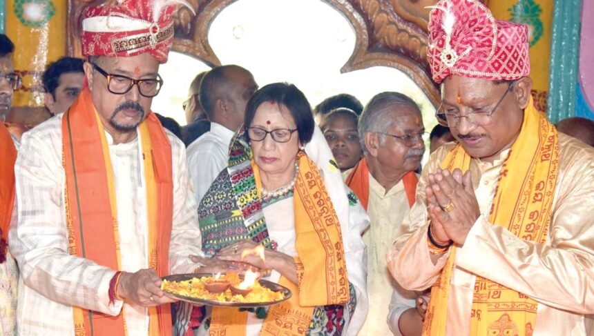 रायपुर। राज्यपाल रमेन डेका और मुख्यमंत्री विष्णु देव साय शुक्रवार को गायत्री नगर रायपुर स्थित जगन्नाथ मंदिर में आयोजित महाप्रभु श्री जगन्नाथ की रथ यात्रा महोत्सव में शामिल हुए। राज्यपाल डेका एवं मुख्यमंत्री विष्णुदेव साय ने भगवान जगन्नाथ की पूजा अर्चना कर ‘छेरा-पहरा‘ की रस्म निभाई। राज्य की प्रथम महिला रानी डेका काकोटी ने जगन्नाथ की विधि-विधान से पूजा अर्चना की। जगन्नाथ मंदिर में विशेष विधि-विधान के साथ महाप्रभु जगन्नाथ जी की रथ यात्रा निकाली गई। रथ यात्रा प्रारंभ करने से पूर्व भगवान की प्रतिमाओं को मंदिर से रथ तक लाया गया और मार्ग को सोने की झाड़ू से स्वच्छ किया गया। इस परंपरा को छेरापहरा कहा जाता है। सीएम साय ने छेरापहरा की रस्म निभाई।
