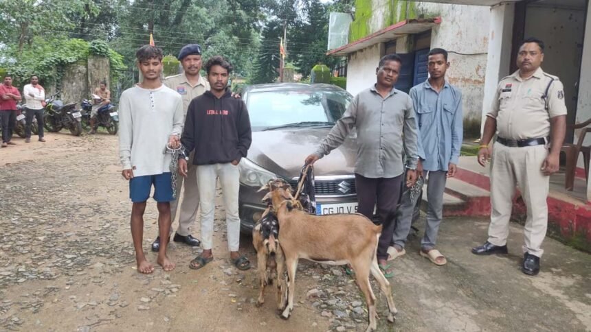 जशपुर। छत्तीसगढ़ के जशपुर जिले में पुलिस ने बकरी चोर गिरोह को पकड़ने में सफलता पाई है। पुलिस ने इस मामले में तीन चोर व एक खरीदार को गिरफ्तार किया है। आरोपियों के पास से चोरी की बकरियां व कार बरामद किया गया है। यह चोर इतने शातिर हैं कि चर रही बकरियों को कार से उठाकर ले जाते और सस्ते दाम में कसाई को बेच देते। मामला जशपुर के बागीचा थाना क्षेत्र का है।