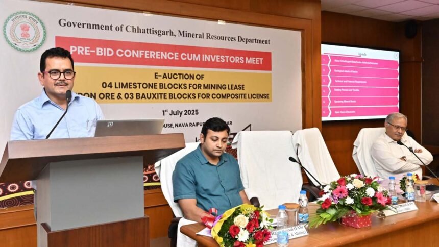 रायपुर। मुख्यमंत्री विष्णु देव साय के मार्गदर्शन में छत्तीसगढ़ में खनिज क्षेत्र में एक महत्वपूर्ण पहल करते हुए चूना पत्थर, लौह अयस्क और बॉक्साइट खनिज के नए ब्लॉकों की ई-नीलामी प्रक्रिया प्रारंभ हो गई है। इसी क्रम में आज नवा रायपुर अटल नगर में निवेशकों के लिए प्री-बिड सम्मेलन का आयोजन किया गया। इस प्री-बिड सम्मेलन का उद्देश्य राज्य की समृद्ध खनिज संपदा को औद्योगिक निवेश के लिए उपलब्ध कराना, स्थानीय विकास को बढ़ावा देना तथा पारदर्शी ई-नीलामी प्रणाली के माध्यम से निवेशकों को आकर्षित करना है।