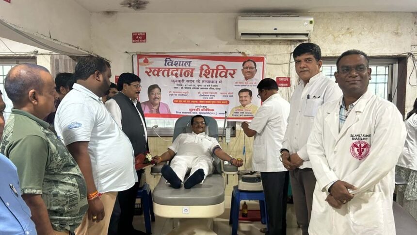 रायपुर। कुनकुरी सदन के तत्वावधान में सोमवार को मेकाहारा अस्पताल परिसर में एक भव्य एवं सफल रक्तदान शिविर का आयोजन किया गया। इस शिविर के मुख्य आयोजक तुलसी कौशिक (निज सहायक मुख्यमंत्री, छत्तीसगढ़) रहे। जिनके अथक प्रयासों और प्रेरणा से यह आयोजन सफलतापूर्वक संपन्न हुआ। इस शिविर में सैकड़ों लोगों ने रक्तदान कर सेवा का संकल्प लिया।