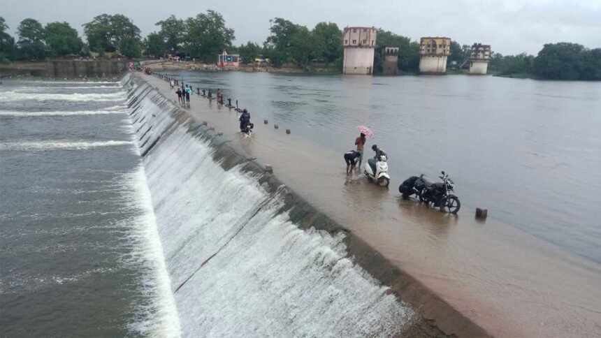 लगातार हो रही बारिश के कारण दुर्ग के शिवनाथ नदी का जलस्तरा बढ़ रहा है। महमरा एनिकट पर बढ़ते जलस्तर के बीच पर्यटक भी पहुंच रहे हैं। बारिश को देखते हुए प्रशासन ने भी अलर्ट जारी किया है। बाढ़ की स्थिति से निपटने के लिए एसडीआरएफ को तैनात किया गया है। दुर्ग जिला प्रशासन ने एनिकट के ऊपर पानी बहने पर वहां से आने जाने से बचने की सलाह दी है। लगातार हो रही बारिश के कारण भिलाई में कई जगह पानी भर गया है। शहर के निचले इलाकों में पानी भरा हुआ है। सुपेला में गदा चौक तक जगह-जगह पानी भरा हुआ है। पिछले 24 घंटे के दौरान प्रदेशभर में बारिश हुई है।