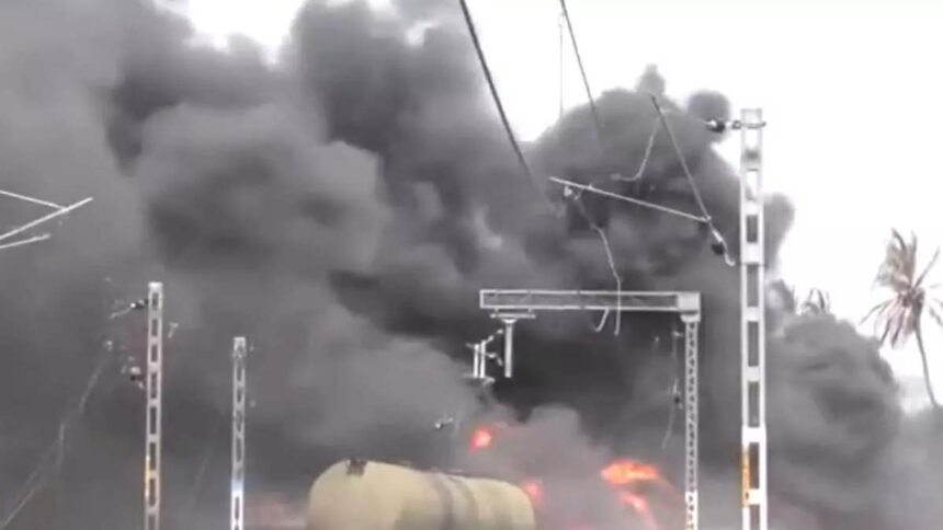 तिरुवल्लूर। तमिलनाडु के तिरुवल्लूर रेलवे स्टेशन के पास रविवार सुबह एक मालगाड़ी पटरी से उतर गई और उसमें आग लग गई। शुरुआती जानकारी के अनुसार, यह मालगाड़ी डीजल और कच्चा तेल लेकर जा रही थी। कंटेनर में तेल होने के कारण इसमें भीषण आग लग गई। इस घटना के बाद तिरुवल्लूर और अरक्कोणम रूट पर चेन्नई सेंट्रल की ओर आने वाली कई एक्सप्रेस ट्रेनों को बीच रास्ते में रोक दिया गया है, जिससे यात्रियों को भारी असुविधा का सामना करना पड़ रहा है।