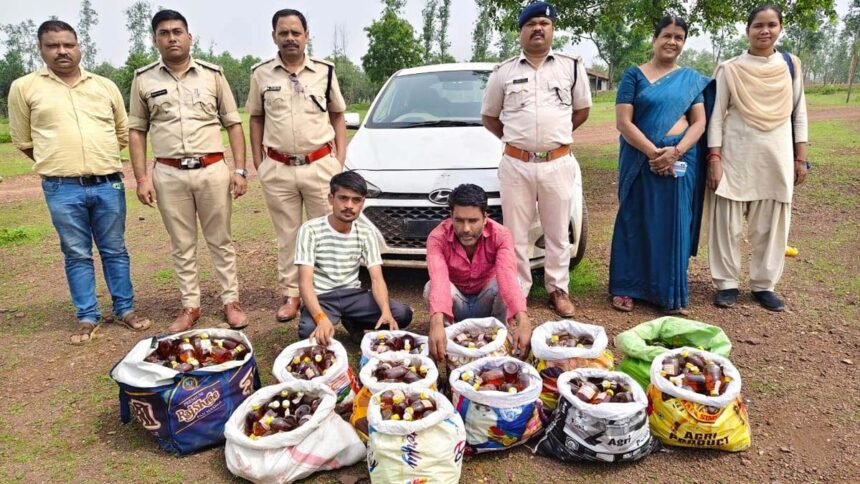 आबकारी विभाग की बड़ी कार्रवाई : 135 बल्क लीटर देशी मदिरा जब्त, 11 प्लास्टिक की बोरियों में 750 पौव्वा शराब, कार भी जब्त
