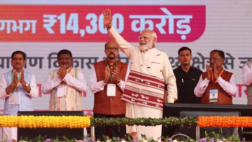 पीएम ने कहा मुझे आज इस बात की भी बहुत खुशी है कि आज हमारा छत्तीसगढ़,नक्सलवाद-माओवादी आतंक की बेड़ियों से मुक्त हो रहा है। नक्सलवाद की वजह से आपने 50-55 साल तक जो कुछ झेला, वो पीड़ादायक है। आज जो लोग संविधान की किताब का दिखावा करते हैं, जो लोग सामाजिक न्याय के नाम पर घड़ियाली आंसू बहाते हैं, उन्होंने अपने राजनीतिक स्वार्थ के लिए आपके साथ दशकों तक अन्याय किया है। माओवादी-आतंक के कारण, लंबे समय तक छत्तीसगढ़ के आदिवासी इलाके सड़कों से वंचित रहे। बच्चों को स्कूल नहीं मिले, बीमारों को अस्पताल नहीं मिले और जो जहां थे, बम से उसे उड़ा दिया जाता था। डॉक्टरों को, टीचरों को मार दिया जाता था और दशकों तक देश पर शासन करने वाले, आप लोगों को अपने हाल पर छोड़कर, वे लोग एयर कंडीशन कमरों में बैठकर अपने जीवन का आनंद लेते रहे।