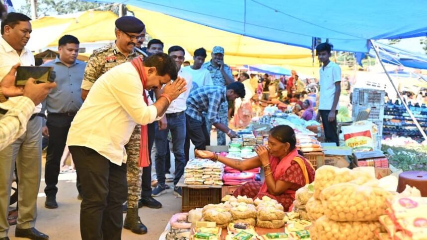 ग्रामीणों ने भी उपमुख्यमंत्री शर्मा के समक्ष शासन द्वारा नक्सल समस्या के समाधान के लिए किए जा रहे प्रयासों की सराहना की। उन्होंने कहा कि क्षेत्र में अब शांति और विकास की नई सुबह दिखाई दे रही है। नक्सली विचारधारा से भटके युवा अब मुख्यधारा में लौट रहे हैं, जिससे बस्तर में स्थायी शांति की नींव मजबूत हो रही है। डिप्टी सीएम शर्मा ने बाजार भ्रमण के दौरान स्थानीय फलों का स्वाद लिया और जनसाधारण से आत्मीयता से बातचीत की। उन्होंने कहा कि बस्तर के विकास के लिए स्थायी शांति सबसे आवश्यक है, और सरकार इस दिशा में निरंतर प्रयासरत है। इस अवसर पर बस्तर संभाग आयुक्त श्री डोमेन सिंह एवं पुलिस महानिरीक्षक श्री सुंदरराज पी भी उपस्थित रहे।