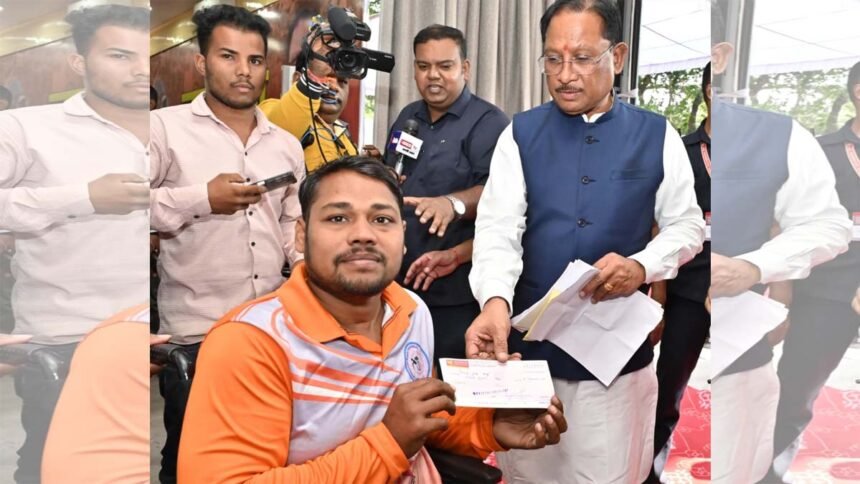 रायपुर । मुख्यमंत्री विष्णु देव साय के निवास में आयोजित जनदर्शन कार्यक्रम में गुरूवार को रायपुर जिले के अभनपुर से आए दिव्यांग रग्बी खिलाड़ी पिंटू राम साहू की मांग पर मुख्यमंत्री ने त्वरित निर्णय लेते हुए 90 हजार रुपए का आर्थिक अनुदान स्वीकृत किया। साहू ने व्हीलचेयर और आवश्यक खेल सामग्री खरीदने हेतु सहायता मांगी थी। उनकी परिस्थितियों और आवश्यकता को समझते हुए मुख्यमंत्री ने उन्हें तत्काल चेक प्रदान कर उनकी सहायता की।