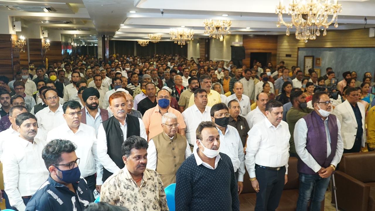 जय व्यापार पैनल के व्यापारी मिलन समारोह में जुटी व्यापारियों की भीड़
