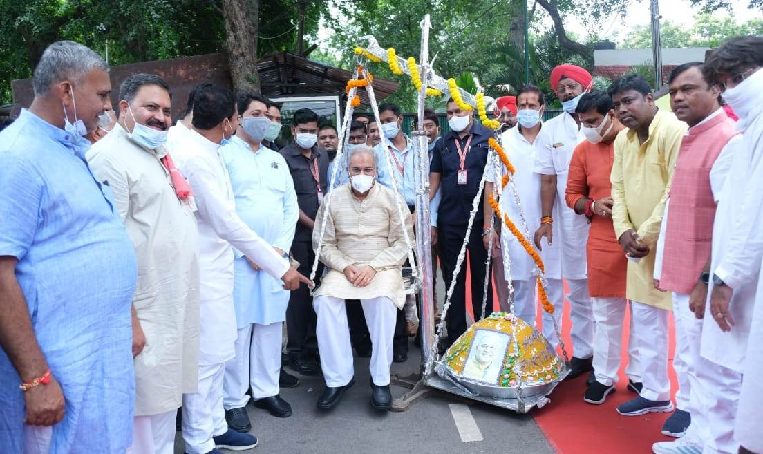 मुख्यमंत्री भूपेश बघेल के जन्म दिवस के अवसर पर आज उन्हें बूंदी के विशाल लड्डू से तौला गया। इस अवसर पर नगरीय प्रशासन मंत्री डॉ शिव कुमार डहरिया, संसदीय सचिव विकास उपाध्याय, विधायक मोहन मरकाम, सांसद दीपक बैज, छत्तीसगढ़ राज्य खनिज विकास निगम के अध्यक्ष गिरीश देवांगन, महापौर रायपुर एजाज ढेबर, सभापित प्रमोद दुबे सहित अनेक जनप्रतिनिधि उपस्थित थे। उन्होंने मुख्यमंत्री को जन्मदिन की बधाई और शुभकामनाएं दीं।