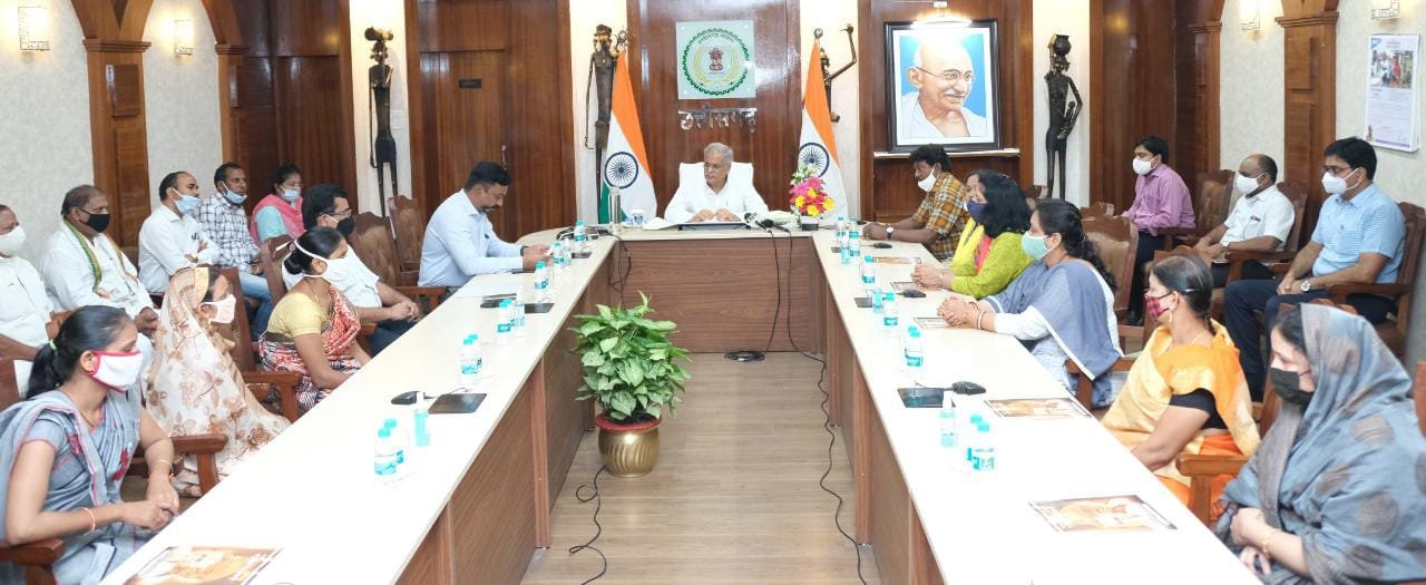 मुख्यमंत्री भूपेश बघेल ने आज अपने निवास कार्यालय में आयोजित कार्यक्रम में संवाददाता, नवभारत दुर्ग स्वर्गीय नरेश सिन्हा की धर्मपत्नी श्रीमती लक्ष्मी सिन्हा, संवाददाता, नवभारत भिलाई-दुर्ग स्वर्गीय अविनाश इंगले की धर्मपत्नी श्रीमती योगिता इंगले, संवाददाता, इस्पात टाइम्स रायपुर स्वर्गीय भरत दुदानी की धर्मपत्नी श्रीमती रजनी दुदानी, फोटोग्राफर, सेन्ट्रल क्रॉनिकल रायपुर स्वर्गीय श्रीकांत मेश्राम की धर्मपत्नी श्रीमती शुभांगी मेश्राम, उप-सम्पादक, दैनिक अग्रदूत स्वर्गीय जियाउल हसन की धर्मपत्नी श्रीमती मेहजबीन बानो, सह-सम्पादक, द-हितवाद रायपुर स्वर्गीय राजा दास की धर्मपत्नी श्रीमती झुमा दास, ़ ब्यूरो प्रमुख, दैनिक नवप्रदेश रायपुर स्वर्गीय अश्विन अगाडे की धर्मपत्नी गंगा सागर अगाड़े, सब-एडीटर, हरिभूमि रायपुर स्वर्गीय दीपक कुमार वर्मा की धर्मपत्नी श्रीमती गायत्री देवी, संवाददाता, दैनिक छत्तीसगढ़ रायपुर स्वर्गीय तिलक देवांगन के पुत्र ऋषभ देवांगन, उर्दू दैनिक खबर एक्सप्रेस रायपुर स्वर्गीय आबिद अली की धर्मपत्नी श्रीमती नासेरा आबिद अली और संवाददाता, हाईवे चैनल रायपुर स्वर्गीय शाकिर खान की धर्मपत्नी श्रीमती सानिया खान को प्रदत्त सहायता राशि का चेक उनकी ओर से स्वर्गीय शाकिर खान के पिता रज्जाक खान ने ग्रहण किया। इस अवसर पर प्रेस क्लब रायपुर के अध्यक्ष दामू आम्बेडारे, कोषाध्यक्ष शगुफ्ता शिरिन और कार्यकारिणी सदस्य मनोज नायक और न्यू प्रेस क्लब ऑफ भिलाई नगर की अध्यक्षा सुश्री भावना पाण्डेय भी उपस्थित थीं। कार्यक्रम का संचालन जनसम्पर्क विभाग के संयुक्त संचालक संजीव तिवारी ने किया। आभार प्रदर्शन अपर संचालक जनसम्पर्क उमेश मिश्रा ने किया। कार्यक्रम में अपर संचालक जनसम्पर्क जे.एल. दरियो उपस्थित भी थे।