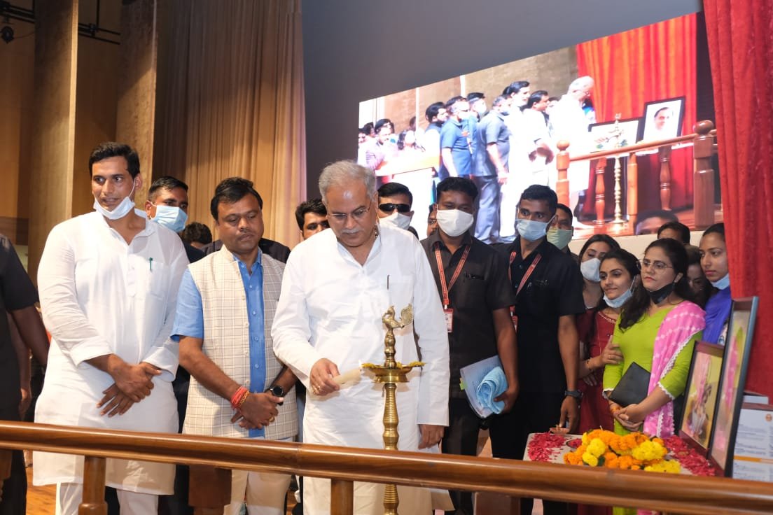 रायपुर। मुख्यमंत्री भूपेश बघेल गुरुवार को रायपुर के पंडित दीनदयाल उपाध्याय ऑडिटोरियम में राजीव युवा मितान क्लब द्वारा आयोजित युवा सम्मेलन में शामिल हुए। उन्होंने संघ लोक सेवा आयोग की परीक्षा में राज्य के सफल प्रतिभागी आकाश श्रीश्रीमाल और आकाश शुक्ला और राज्य सिविल सेवा परीक्षा की प्रावीण्य सूची में स्थान पाने वाले नीरनिधि नन्देहा सहित 10 विद्यार्थियों, पैराओलम्पिक में सिल्वर पदक विजेता योगेश कथुरिया, पर्वतारोही सुश्री नैना सिंह धाकड़, पर्वतारोही चित्रसेन साहू, गायक सहदेव दिरदो, छत्तीसगढ़ी फिल्म कलाकार प्रकाश अवस्थी, छत्तीसगढ़ी गायक ऋषिराज पाण्डेय, छत्तीसगढ़ी गायिका सुश्री आरु साहू को सम्मानित किया।