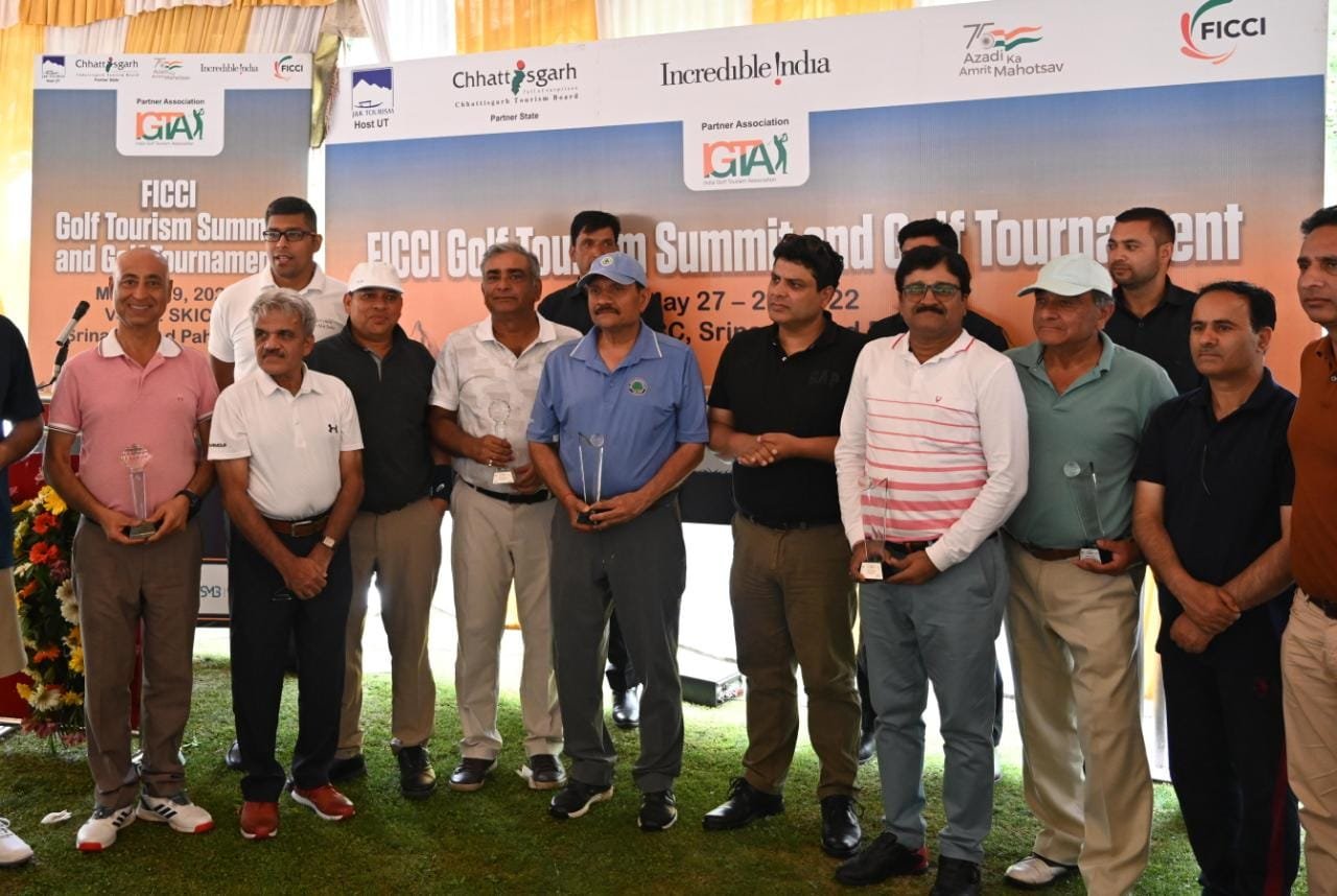 श्रीनगर। जम्मू कश्मीर टूरिज़्म, फिक्की एवं इंडियन गोल्फ एसोसिएशन के संयुक्त तत्वाधान में 27 से 30 मई तक आयोजित गोल्फ, माइस टूरिज्म समिट एवं गोल्फ टूर्नामेंट में छत्तीसगढ़ टूरिज्म बोर्ड सह प्रयोजक रहा। इस भव्य आयोजन के समापन एवं पुरूस्कार समारोह के अवसर पर विजेताओ की घोषणा की गयी । विजेता मे छत्तीसगढ से श्री अनिल राय, आई.एफ.एस को रनरअप पहलगाम 18 होल टूर्नामेंट केटेगरी (14-24 Handicap) एवं सलिल श्रीवास्तव, मुख्य अभियंता , ओ.एस.डी. आवास एवं पर्यावरण को क्लोजेसट् टू द पीन पहलगाम 18 होल टूर्नामेंट का विजेता घोषित किया गया तथा विजेताओ को प्रतीक चिह्न प्रदाय किया गया।