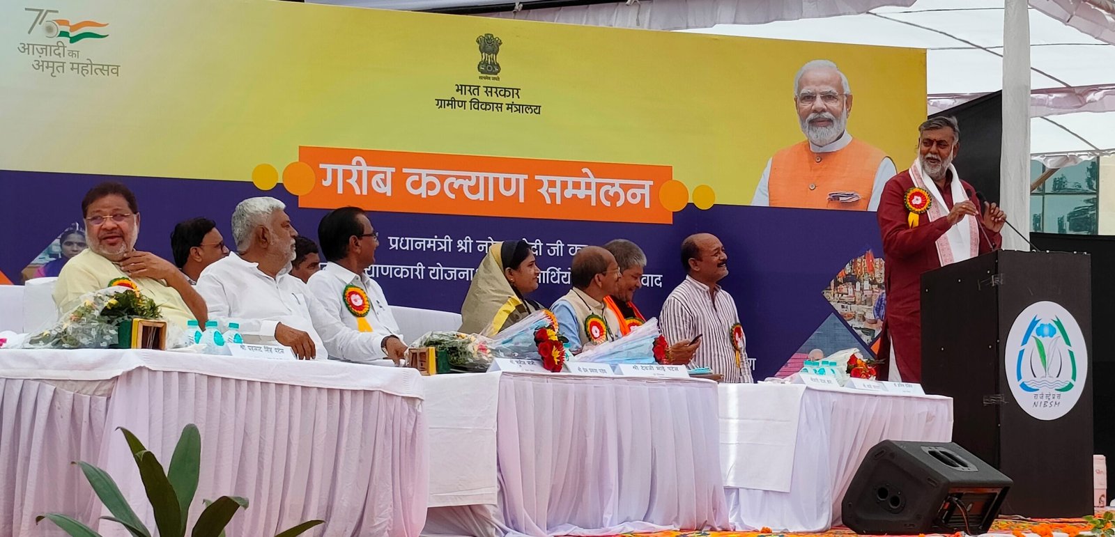 रायपुर। मोदी सरकार का मूल मंत्र है- सेवा, सुशासन और गरीब कल्याण यह बात आज, 31 मई, 2022 को केन्द्रीय खाद्य प्रसंस्करण उद्योग और जल शक्ति राज्यमंत्री प्रहलाद सिंह पटेल ने आईसीएआर-नेशनल इंस्टीट्यूट ऑफ बायोटिक स्ट्रेस मैनेजमेंट संस्थान, बरौंदा, रायपुर में आयोजित गरीब कल्याण सम्मेलन में कही। उन्होंने कहा कि आज भारत, प्रधानमंत्री नरेन्द्र मोदी के नेतृत्व में आत्मनिर्भरता की राह पर चलते हुए, आर्थिक महाशक्ति बनने की दिशा में अग्रसर है ।