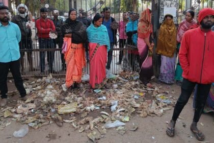 Bhilai Breaking : निगम कार्यालय में सफाई कर्मियों का प्रदर्शन, चिकन दुकान का कचरा गेट पर फेंका, अफसरों को भी जाने से रोका