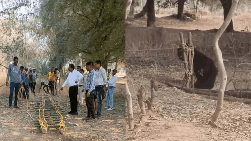 50 फीट गहरे कुएं में गिरा भालू, वन विभाग ने सीड़ी के सहारे किया रेस्क्यू
