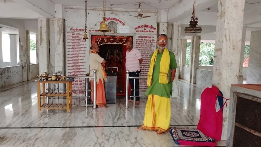 भिलाई। महाराणा प्रताप भवन सेक्टर-7 परिसर में स्थित मां जगदंबा मंदिर में बीती रात चोरों ने तीन ताले तोड़े और मंदिर का सारा कैश लेकर रफुचक्कर हो गए। बताया जा रहा है कि मंदिर में लगभग एक लाख रुपए कैश रखा हुआ था जो चोरी हो गया। बुधवार की सुबह मंदिर में चोरी का पता चला और इसके साथ समिति के पदाधिकारी पहुंच गए। फिलहाल घटना की सूचना पुलिस को दी गई। भिलाई नगर पुलिस घटना की जांच कर रही है।