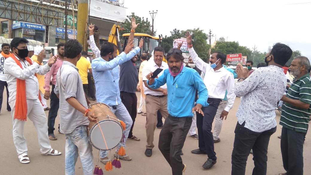 भिलाई। अयोध्या में भगवान राम के भव्य मंदिर के लिए आज पीएम मोदी ने शिलान्यास किया। इसके साथ ही देशभर में इसका जश्र शुरू हो गया। भगवान राम के मंदिर निर्माण का भूमिपूजन ट्विनसिटी के लोगों के लिए भी जश्र का माहौल लेकर आया। लोगों ने नाचते गाते इसकी खुशी मनाई। भाजयुमो नेताओं मिठाई बांटकर मंदिर निर्माण के भूमिपूजन का जश्र मनाया। इस दौरान पटाखे भी फूटे।
