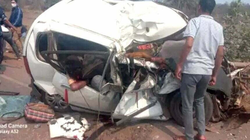 मिली जानकारी के अनुसार ट्रक क्रमांक CG-19 बीजी 1705 आयरन ओर भरकर जा रही थी। बालोद जिले के मरकाटोला गांव के पास सामने से आ रही कार और बाइक को ट्रक ने टक्कर मार दी। टक्कर इतनी जोरदार थी कि कार व बाइक के परखच्चे उड़ गए। हादसे में पांच लोगों की मौत हो गई। मृतकों में लिखनराम देवांगन, जानवी देवांगन, भूपेंद्र वैष्णव, हेमचंद देशमुख व बाइक सवार नकुल साहू शामिल है। वहीं हादसे में तीन लोग घायल हो गए हैं। बताया जा रहा है कि जिन लोगों की मौत हुई वे सभी लोहारा ब्लॉक के ग्राम दुपचेरा के रहने वाले थे। सभी नाराणयणपुर जा रहे थे इसी दौरान हादसा हो गया।