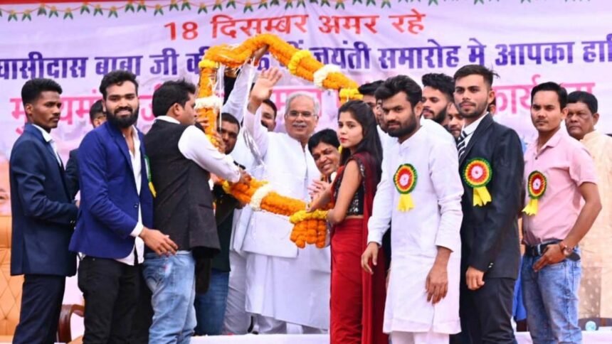 मुख्यमंत्री बघेल ने शासकीय आदर्श पोस्ट मैट्रिक अनुसूचित जाति बालक छात्रावास पेंशनबाड़ा में आयोजित बाबा गुरू घासीदास जंयती समारोह में कहा कि गुरुघासीदास जी एक ऐसे संत थे जिन्होंने मानवता को बचाने के लिए मानव-मानव एक समान का संदेश दिया। साथ ही उन्होंने समाज में फैली कुरूतियों को दूर करने के लिए समानता, भाईचारा, प्रेम और सद्भाव का भी संदेश दिया। उन्होंने कहा कि गुरू घासीदास जी एकमात्र संत हैं, जिन्होंने छत्तीसगढ़ी में उपदेश दिया। उन्होंने छत्तीसगढ़ी भाषा बोली को आगे बढ़ाने का काम किया है।