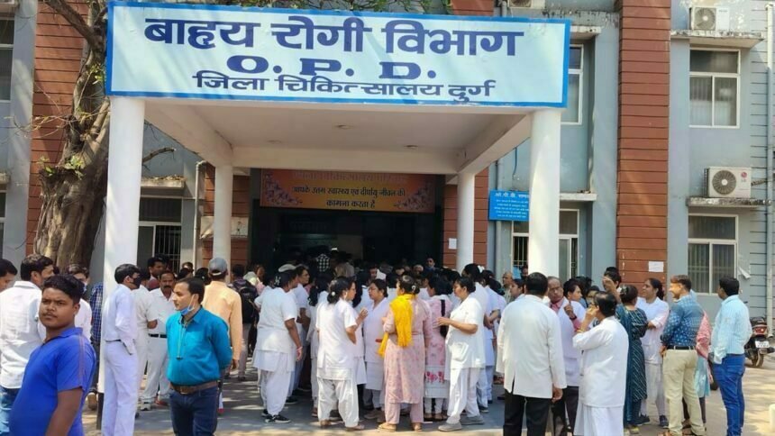 दुर्ग। जिला अस्पताल में किन्नरों द्वारा नर्सों से मारपीट के बाद सुरक्षा पर सवाल खड़े हो गए हैं। अस्पताल के डॉक्टर व नर्स इस घटना के साथ पहले हुई घटनाओं के कारण अपने आप को सुरक्षित महसूस नहीं कर रहे हैं। सोमवार को जिला अस्पताल के डॉक्टरों व नर्सों ने काम बंद कर प्रदर्शन शुरू कर दिया। इस दौरान इन्होंने मांग की है कि अस्पताल परिसर में एक पुलिस चौकी खुलनी चाहिए ताकि डॉक्टर व नर्स अपने आप को सुरक्षित महसूस कर सके।