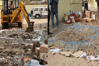 बेमेतरा पुलिस ने नष्ट कर दी 1783 लीटर शराब, कोर्ट के आदेश पर बुलडोजर से कुचलवाया