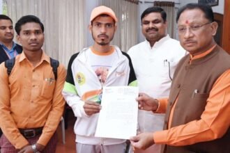 माँ बम्लेश्वरी धाम डोंगरगढ़ से उलटे पांव भारत भ्रमण पर निकले मेहुल लखानी से मिले सीएम साय, यात्रा के लिए दी बधाई