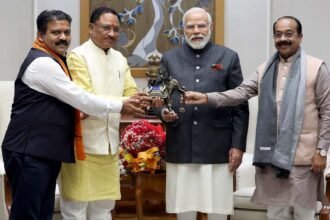 रायपुर। छत्तीसगढ़ के मुख्यमंत्री विष्णुदेव साय ने आज नई दिल्ली में प्रधानमंत्रीनरेंद्र मोदी से मुलाकात की। इस दौरान उन्होंने प्रधानमंत्री जी से छत्तीसगढ़ के विकास व जनहित से जुड़े मुद्दों पर चर्चा की। मुख्यमंत्री विष्णुदेव साय ने प्रधानमंत्री नरेंद्र मोदी को ‘मोदी की गारंटी पर छत्तीसगढ़ सरकार द्वारा लिए गए…