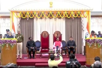 रायपुर। छत्तीसगढ़ में भाजपा सरकार के मंत्रियों ने शुक्रवार को राजभवन में शपथ ग्रहण किया। राजभवन में हुए सादे समारोह में राज्यपाल विश्वभूषण हरिचंदन ने सभी 9 विधायकों को पद एवं गोपनियता की शपथ दिलाई। इसके साथ ही सीएम विष्णुदेव के नए मंत्रिमंडल का गठन हो गया है। जल्द ही…