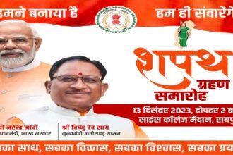रायपुर। छत्तीसगढ़ के आदिवासी नेता विष्णुदेव साय 13 दिसंबर यानी आज नए मुख्यमंत्री पद की शपथ लेंगे। आदिवासी समाज के दिग्गज नेता विष्णुदेव साय छत्तीसगढ़ के चौथे मुख्यमंत्री बनने वाले हैं। पहले दो बजे होने वाला शपथ ग्रहण समारोह अब चार बजे होगा। प्रधानमंत्री नरेंद्र मोदी शपथ ग्रहण समारोह में…
