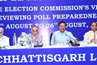 रायपुर। भारत के मुख्य निर्वाचन आयुक्त राजीव कुमार तथा निर्वाचन आयुक्तद्वय अनूप चंद्र पांडेय और अरूण गोयल ने शुक्रवार को प्रदेश के सभी जिलों के कलेक्टर और पुलिस अधीक्षक, सभी संभागों के आयुक्त तथा पुलिस रेंजों के महानिरीक्षक के साथ बैठक कर विधानसभा आम निर्वाचन की तैयारियों की जिलेवार समीक्षा…