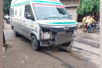मेडिकल स्टोर की सीढ़ियों से टकराई एंबुलेंस, अस्पताल से निकलते ही हुआ हादसा… चालक की मौत