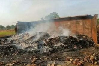 दंतेवाड़ा। छत्तीसगढ़ के दंतेवाड़ा जिले में शनिवार देर रात तेंदूपत्ता से भरे ट्रक में अचानक आग लग गई। तेंदुपत्ता के साथ पूरा ट्रक चलकर खाक हो गया। बताया जा रहा है जब ट्रक में भरे तेंदुपत्ते में आग लगी तो ड्राइवर उसमें सो रहा था। पास से गुजर रहे ग्रामीणों…