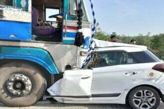 CG accident : ट्रक से भिड़ गई तेज रफ्तार कार, पति-पत्नी व दो मासूम बच्चों की मौत