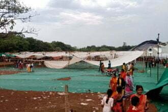 बारिश से जयंती स्टेडियम का कथा स्थल हुआ पानी-पानी, पंडित प्रदीप मिश्रा ने कहा- असुविधा से बचने घर से सुने कथा