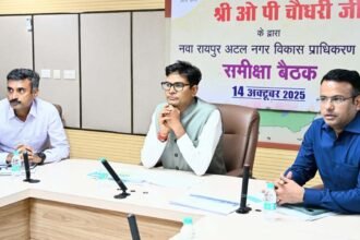 रायपुर। नवा रायपुर अटल नगर विकास प्राधिकरण में आज वित्त, आवास एवं पर्यावरण मंत्री ओपी चौधरी की अध्यक्षता में निवेश, अधोसंरचना विकास और जनसुविधाओं से संबंधित कार्यों की प्रगति की समीक्षा बैठक आयोजित हुई। बैठक में मंत्री चौधरी ने अधिकारियों से शहर के योजनाबद्ध और तीव्र विकास पर विस्तृत चर्चा…