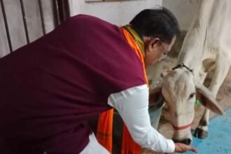 मुख्यमंत्री साय ने सीएम हाउस में गौमाता को रोटी और गुड़ खिलाकर की प्रदेशवासियों के कल्याण की प्रार्थना