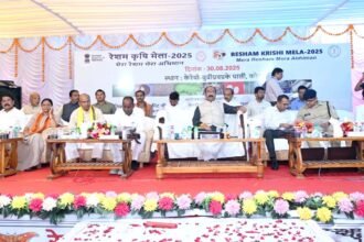 रेशम उत्पादन को बढ़ावा देने और किसानों को प्रोत्साहित करने उपमुख्यमंत्री ने डीएमएफ से एक करोड़ रुपए देने की घोषणा की कोरबा। छत्तीसगढ़ में रेशम उत्पादन को बढ़ावा देने रेशम कृषि मेला सह मेरा रेशम, मेरा अभिमान का उपमुख्यमंत्री व जिले के प्रभारी मंत्री अरुण साव ने शुभारंभ किया। इस…