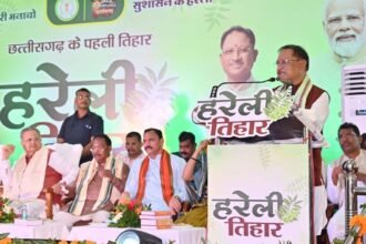 किसानों की खुशहाली और हरियाली का उत्सव बना मुख्यमंत्री निवास का हरेली तिहार आयोजन रायपुर। रायपुर सिविल लाइन स्थित मुख्यमंत्री निवास में आज हरेली पर्व का गरिमामय आयोजन हुआ। त्यौहार मनाने के लिए पूरे परिसर को ग्रामीण परिवेश में सजाया गया था। इस मौके पर मुख्यमंत्री विष्णु देव साय ने…