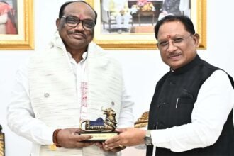 रायपुर। भारत सरकार के केंद्रीय जनजातीय कार्य राज्य मंत्री दुर्गा दास उइके ने मुख्यमंत्री विष्णु देव साय से रायपुर स्थित मुख्यमंत्री निवास कार्यालय में सौजन्य भेंट की। मुख्यमंत्री साय ने केंद्रीय जनजातीय कार्य राज्य मंत्री उइके का पारंपरिक कोसा वस्त्र और बेल मेटल से निर्मित स्मृति चिह्न भेंट कर आत्मीय…