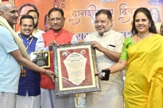 मुख्यमंत्री साय ने कहा- मानवता की सेवा और दानशीलता के लिए हमेशा से आगे रहा है अग्रवाल समाज रायपुर। मुख्यमंत्री विष्णु देव साय राजधानी रायपुर में छत्तीसगढ़ी अग्रवाल समाज द्वारा दानशीलता दिवस पर आयोजित सम्मान एवं शपथ ग्रहण समारोह में शामिल हुए। उन्होंने इस दौरान छत्तीसगढ़ी अग्रवाल भवन में समाज…