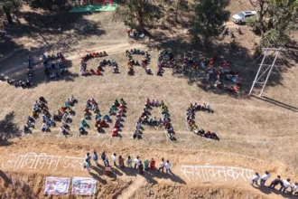 करमरी में ग्रामीणों द्वारा मानव श्रृंखला बनाकर ‘आत्मनिर्भर गांव – विकसित भारत’ का दिया संदेश