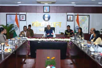 रायपुर। छत्तीसगढ़ राज्य निर्वाचन आयुक्त अजय सिंह की अध्यक्षता में नगरपालिकाओं एवं त्रिस्तरीय पंचायतों के रिक्त पदों की पूर्ति हेतु आम/उप निर्वाचन 2026 की तैयारियों पर चर्चा के लिए आयोग कार्यालय, नवा रायपुर में एक महत्वपूर्ण बैठक आयोजित की गई। बैठक में निर्वाचन संबंधी तैयारियों, प्रशासनिक समन्वय एवं समयबद्ध कार्यवाही…