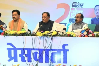रायपुर। मुख्यमंत्री विष्णु देव साय ने शुक्रवार को वर्तमान सरकार के 2 वर्ष पूर्ण होने पर न्यू सर्किट हाउस सिविल लाइन्स में आयोजित प्रेसवार्ता में राज्य सरकार के दो वर्ष के कार्यकाल का रिपोर्ट कार्ड प्रस्तुत किया। करते हुए कहा कि माननीय प्रधानमंत्री श्री नरेन्द्र मोदी के नेतृत्व और उनकी…