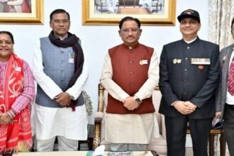 रायपुर। मुख्यमंत्री विष्णु देव साय से राजधानी रायपुर स्थित मुख्यमंत्री निवास कार्यालय में छत्तीसगढ़ राज्य सैनिक कल्याण बोर्ड के सचिव ब्रिगेडियर विवेक शर्मा ने सौजन्य भेंट की। इस अवसर पर उन्होंने मुख्यमंत्री साय को सशस्त्र सेना झंडा दिवस के प्रतीक स्वरूप सम्मान बैज लगाया तथा संचालनालय सैनिक कल्याण द्वारा संचालित…