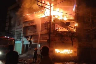भिलाई। दुर्ग शहर के इंदिरा मार्केट में रविवार की रात को भीषण आग लग गई। जूते चप्पल की दुकान में लगी आर आसपास के चार दुकानों तक फैली। सूचना के बाद मौके पर पहुंची दमकल की गाड़ियों ने पांच घंटे की मशक्कत के बाद आग पर काबू पाया। बताया जा…