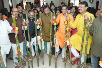 भिलाई भाजपा कार्यालय में दिखी हरेली की धूम, विधायक रिकेश ने किया सुआ नृत्य