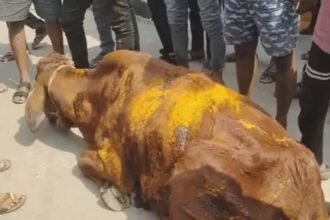 कैंप-2 में गाय को चाकू से गोदा, बदमाश ने 50 से ज्यादा वार किए, हिन्दूवादी संगठनों ने घेरा थाना