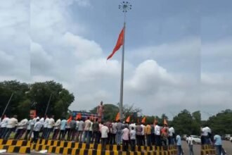 सेक्टर 09 चौक पर लहराया 50 फीट ऊंचा भगवा ध्वज, सनातनियों की एकजुटता का बना प्रतीक