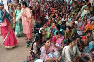 दुर्ग में जुटी जिले भर की आंगनबाड़ी कार्यकर्ता और सहायिकाएं, सरकारी कर्मचारी घोषित करने व अन्य मांगों को लेकर दिया धरना