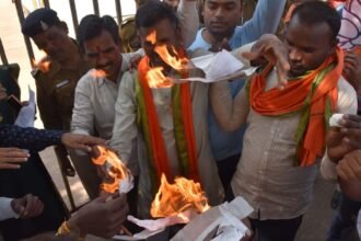सुरक्षा निधि के नाम पर भारी भरकम बिल का विरोध, भाजयुमो ने घेरा बिजली दफ्तर
